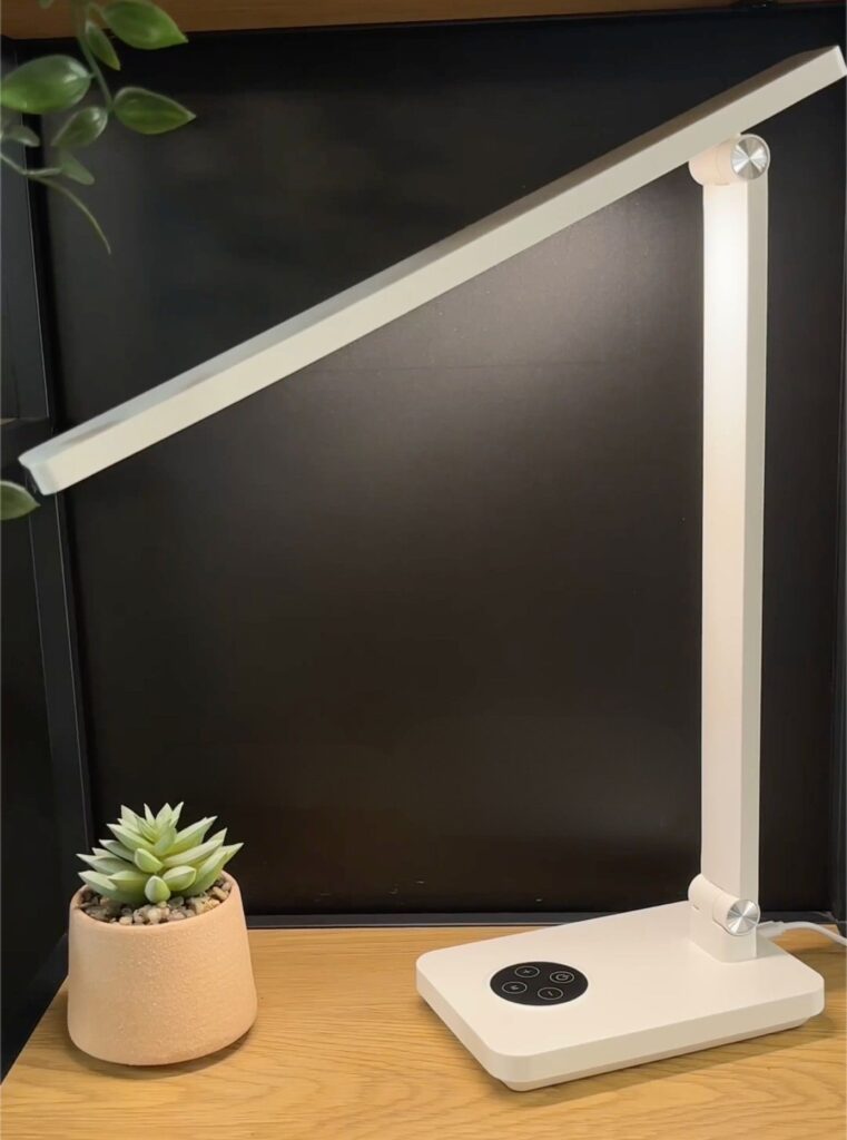 Čista, bela završna obrada i lagana plastika čine da se lampa prirodno stopi sa modernim radnim stolom, studentskom sobom ili noćnim ormarićem. Estetika je svedena, funkcionalna i nenametljiva — fokus ostaje na onome što radiš.